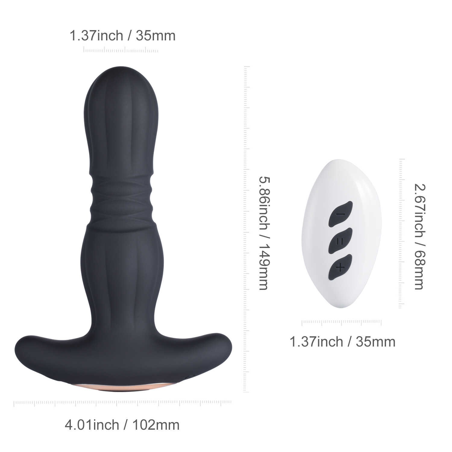 Agas est notre nouveau meilleur stroker de plaisir anal qui vous stimule à poussées vitesse inégalée de 600 fois par minute ! Plus puissant et plus rapide que tous les bouchons anaux traditionnels. Ce plug anal haute énergie a un corps ferme et une peau enveloppante pliée pour permettre au corps du plug de pousser de haut en bas, à l’intérieur de votre cul ! Il est fabriqué avec une base en forme d’ancre pour un port sûr et sécurisé ; vous pouvez le porter soit par voie anale ou vaginale. La télécommande vous permet de naviguer facilement dans les 7 programmes puissants. Agas est idéal pour le teasing, ou l’échauffement, et plus franchement, pour l’orgasme en lui-même. Grâce à l’élasticité et à la plénitude de l’arrière-train, vous pouvez créer toutes sortes de sensations avec la poussée télescopique à grande vitesse et passer un moment plus riche en plaisir, seul ou avec des partenaires. Silicone sans danger pour le corps de qualité supérieureExtra-doux pour un toucher confortable 7 modes de pousséesPour cibler les points sensibles avec des sensations intenses Vitesse de poussée folle à 600 fois/MinJouissez d’incroyables palpitations à l’intérieur de vous Corps de taille moyenneApporte de l’ampleur et de la fermeté Base évaséePour garantir un port sûr et sécurisé TélécommandéPermet une exploration ludique plus discrète Caractéristiques principales 600 poussées/minute offrent une stimulation intense pour des sensations très agréables.· Les poussées télescopiques à grande vitesse ciblent vos terminaisons nerveuses les plus sensibles.· Le matériau extra-doux, sans danger pour le corps, assure une insertion confortable.· Le corps de taille moyenne donne de l’ampleur et de la fermeté.· 7 modes de poussée pour une sensation accrue dans le jeu anal.· Une base évasée pour une utilisation sûre et sécurisée.· Télécommande incluse pour un changement de fonction facile et discret.· Rechargeable par USB, il permet de jouer jusqu’à 1 heure sans interruption.· Étanchéité IPX7, pour pimenter l’heure de la douche ou du bain. Associez-le à un lubrifiant à base d’eau.? Matériau : Silicone sans danger pour le corps + ABS? Taille : 5,86″*4″*1,4″? Poids : 0,34 LB? Temps de charge : 1,5 Heures? Durée de la batterie : 1 Heure? Type de batterie : Lithium-ion, rechargeable ? Étanchéité : IPX7