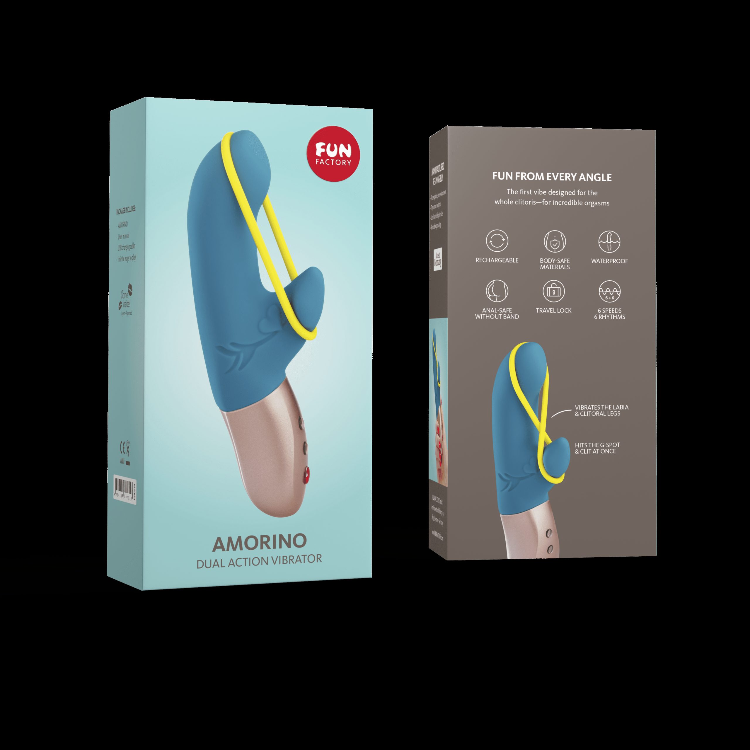 Mini-vibromasseur pour faire vibrer le clitoris et bien plus encoreAu-delà de la double action – fait vibrer le clitoris, le point G et les lèvresLa bande amovible diffuse les vibrations autour de la vulve.Légèrement incurvé pour le point G ou la prostateAccédez aux pattes du clitoris pour des orgasmes plus intensesMoteur silencieux, parce que l’intimité compteTypeRabbit VibratorPowerRechargeable (with charging level indicator)Movement6 speeds & 6 patternsFunctionsTravel LockDimensions17,7 cm and Ø 2,1-3,2 cmWeight147 gBattery Life1-4 hoursCharging Time8 hour initial chargeMaterialsBody-safe materials, non-porous and hypoallergenic DEUX FOIS PLUS D’ACTIONOptimisez vos orgasmes ! Placez l’extension sur votre clitoris et faites basculer l’AMORINO d’avant en arrière contre votre point G. (Pour le jeu anal, il suffit d’enlever l’élastique !)FAITES VIBRER LES JAMBES DU CLITORISPlacez une extrémité sur votre clitoris et l’autre contre l’ouverture vaginale, de façon à ce que la bande repose sur vos lèvres. Sentez la vibration partout.CONCENTREZ VOS VIBRATIONSEnroulez l’élastique une ou deux fois pour obtenir des vibrations ciblées et très intenses, par exemple pour jouer avec les mamelons.UN RABBIT D’UN AUTRE GENREEt si nous vous disions que vous n’utilisez qu’une fraction de votre clitoris ? Sous la peau, votre clitoris s’étend sur quelques centimètres dans votre corps, et ses « jambes » s’enroulent autour de vos lèvres. L’AMORINO est un double vibrateur pour une stimulation clitoridienne d’un nouveau genre et le premier vibrateur conçu pour vous permettre toucher toutes les zones du clitoris en même temps.QU’EST-CE QUI REND L’AMORINO SPÉCIAL ?Laissez-nous vous expliquer : l’AMORINO est un vibromasseur double, conçu pour que vous puissiez placer l’extension la plus courte contre votre clitoris et faire basculer la tige incurvée contre votre point G. Comme si cela ne suffisait pas, son élastique en silicone s’enroule autour de vos lèvres, apportant des vibrations aux jambes clitoridiennes souvent négligées. En outre, vous pouvez utiliser le verrou de voyage pour un rangement et un transport sûrs.POURQUOI L’ÉLASTIQUE EST-IL AMOVIBLE ?Vous pouvez vous amuser à l’enrouler sur le vibrateur, afin d’obtenir une vibration ciblée au milieu de l’élastique. C’est idéal pour se concentrer sur le clitoris ou pour jouer avec les mamelons. Essayez de le tourner de différentes manières pour obtenir des sensations différentes ! Si vous avez envie d’une pénétration plus profonde, il est préférable d’enlever l’élastique avant.Conseil de pro : certains aiment utiliser l’élastique comme un anneau pénien !PUIS-JE UTILISER LE VIBRATEUR RABBIT AMORINO POUR LES JEUX ANAUX ?Bien sûr. Il suffit d’enlever l’élastique avant ! L’extension de l’AMORINO n’est pas seulement un gage de sécurité anale, elle vous permet également de profiter des vibrations sur le périnée, riche en nerfs. De plus, sa tige lisse et incurvée est idéale pour jouer avec la prostate.