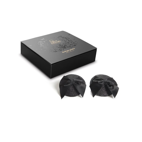 Vos clientes ont déjà leurs tenues, leurs lingeries ? Nous avons trouvé de quoi rajouter la cerise sur le gâteau! Avec ces cache-tétons pailletés avec noeuds en satin, les seins, eux aussi, auront droit à un certain style! Chaque femme pourra à son tour devenir une danseuse ou une séduisante tentatrice au style burlesque, alliant sensualité et classe, il est temps de ressusciter les années folles avec Bijoux Indiscrets !