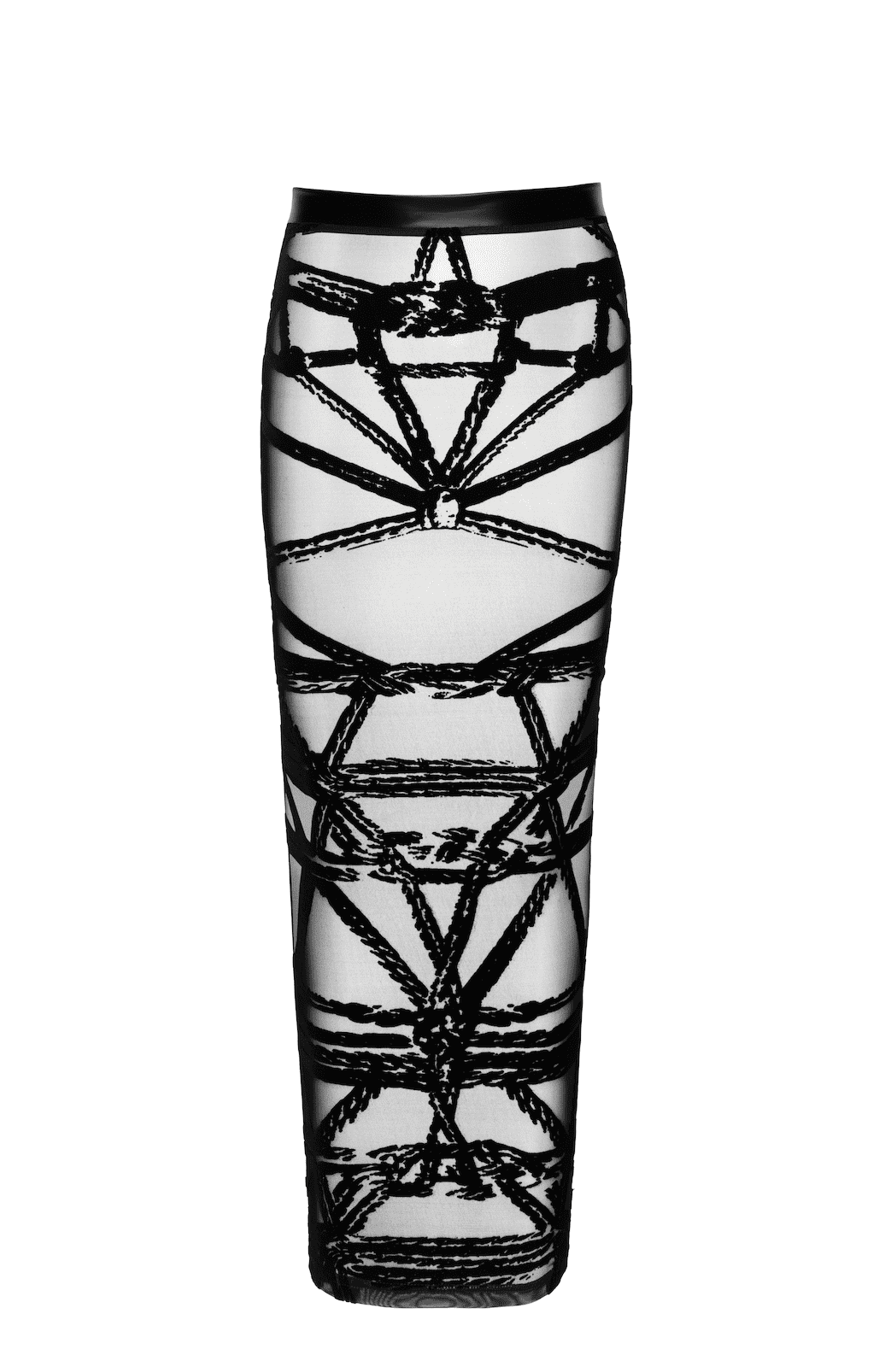 Une jupe en tulle floqué de style bondage, avec une ceinture en wetlook soft power et une fente à l?arrière.86% polyester, 14% elasthan