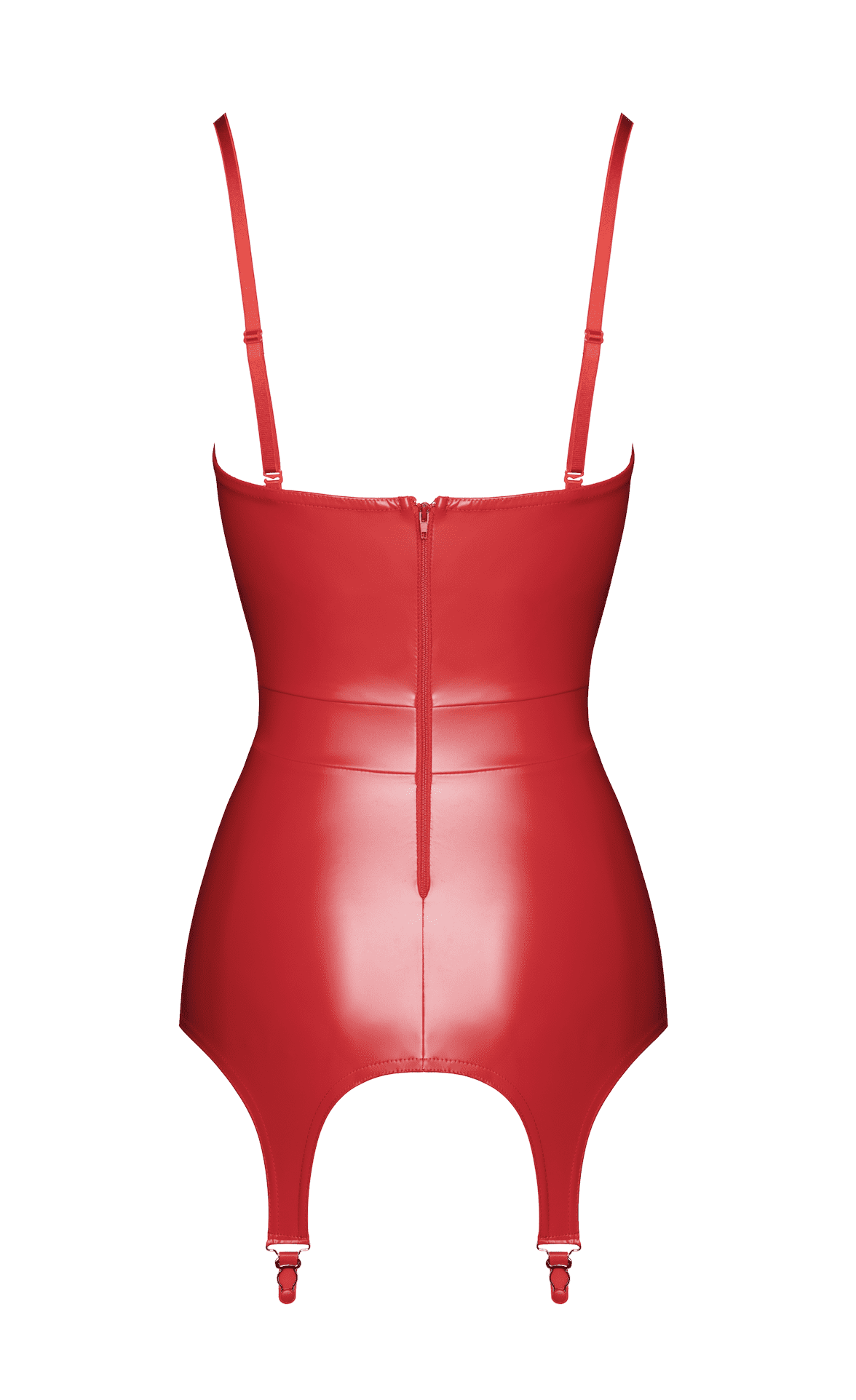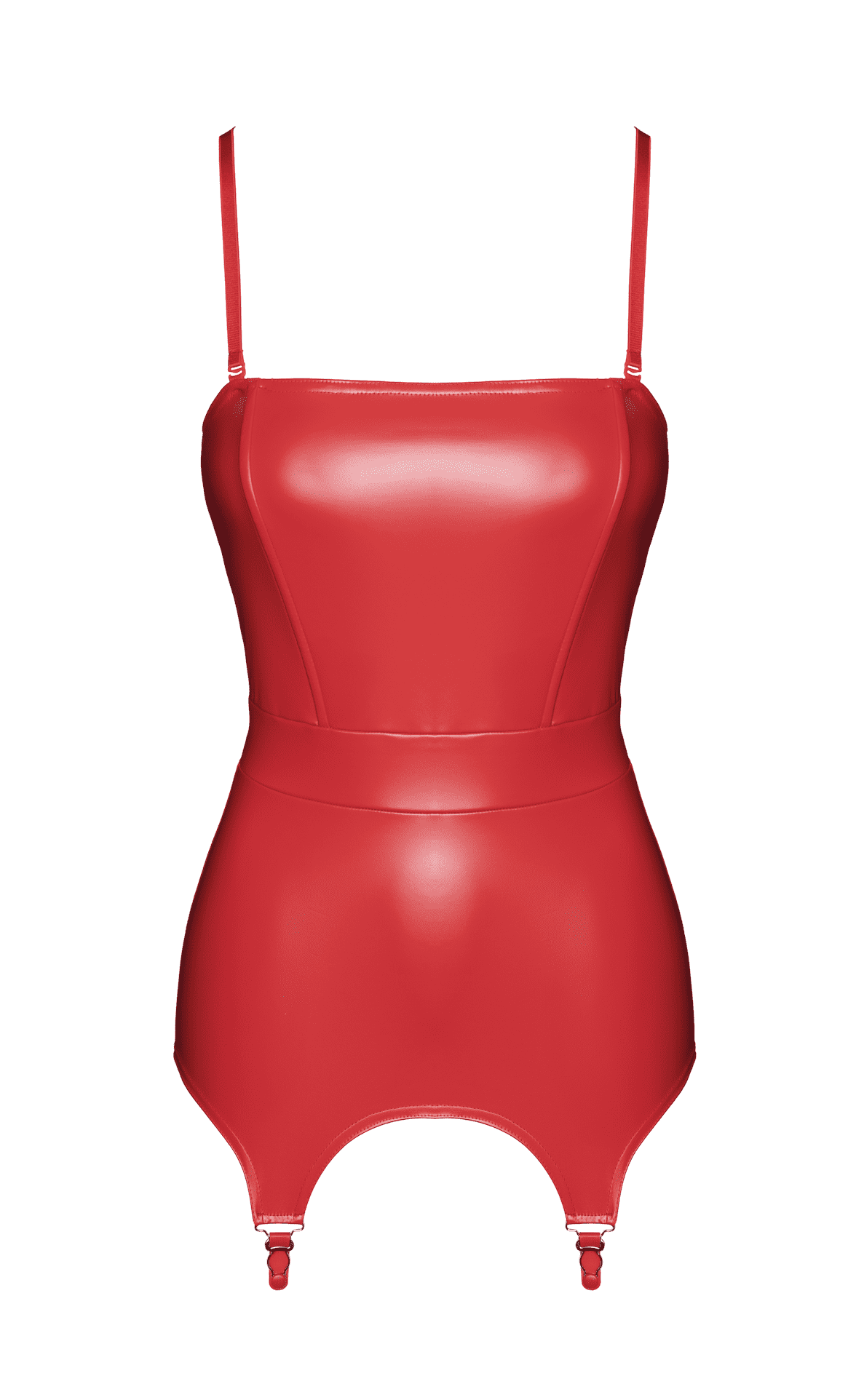 Combinaison de corset et de porte-jarretelles en tissu powerwetlook rouge. Coupe accentuant la taille avec un haut structuré de style corset avec baleines pour la structure et le soutien. Fermé à l?arrière avec une fermeture éclair. La section inférieure fonctionne comme un porte-jarretelles avec quatre sangles et clips.Matériel:Tissu principal : 76% polyester, 24% elasthan, Polimer coating