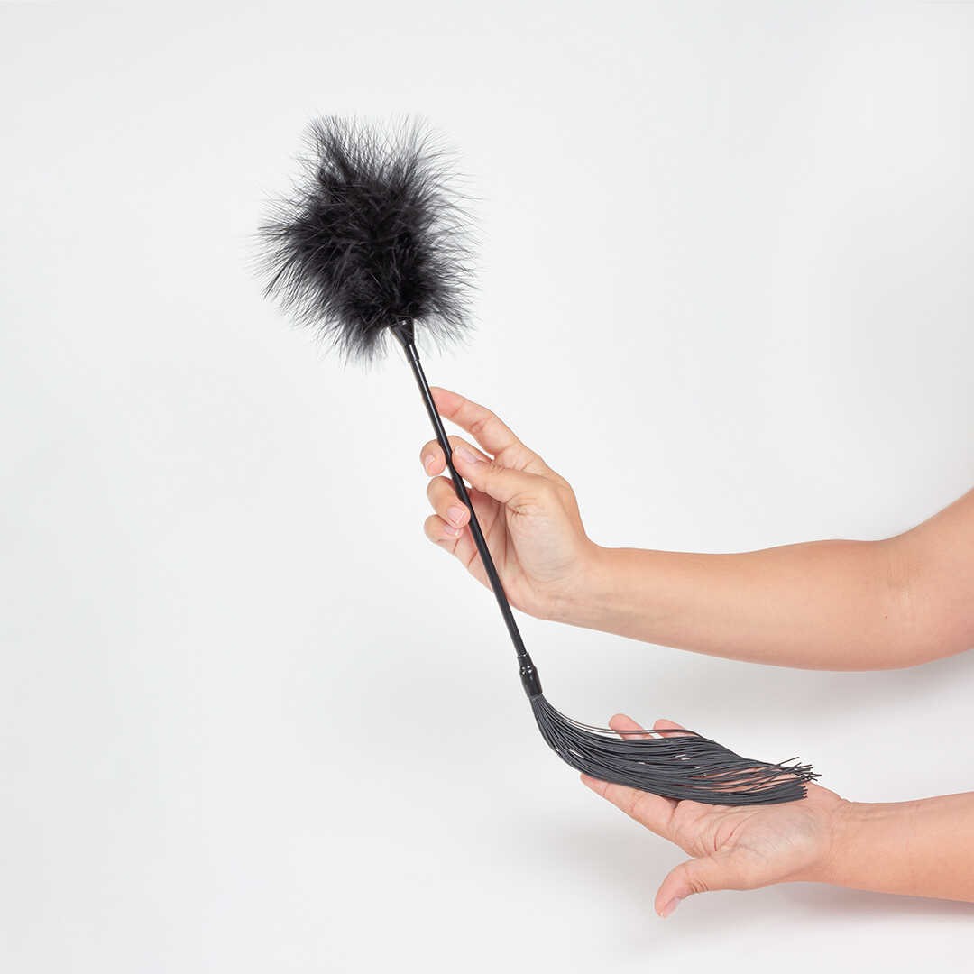 C’est le bon moment pour essayer ce nouveau jouet destiné au plaisir avec un fouet d’un côté et des plumes de l’autre. Caractéristiques: Couleur noire Double usage : plumeau + fouet Tige robuste de 21 cm. Mesure de la plume : 10,5 x 6 cm. Mesure du fouet : 8,5 x 2 cm. Mesure avec carton : 22 x 5 cm. Mesure avec polybag : 43 x 9 cm. Référence : 3421K EAN: 8435097634210 Poids : 0,04 kg / 40 gr