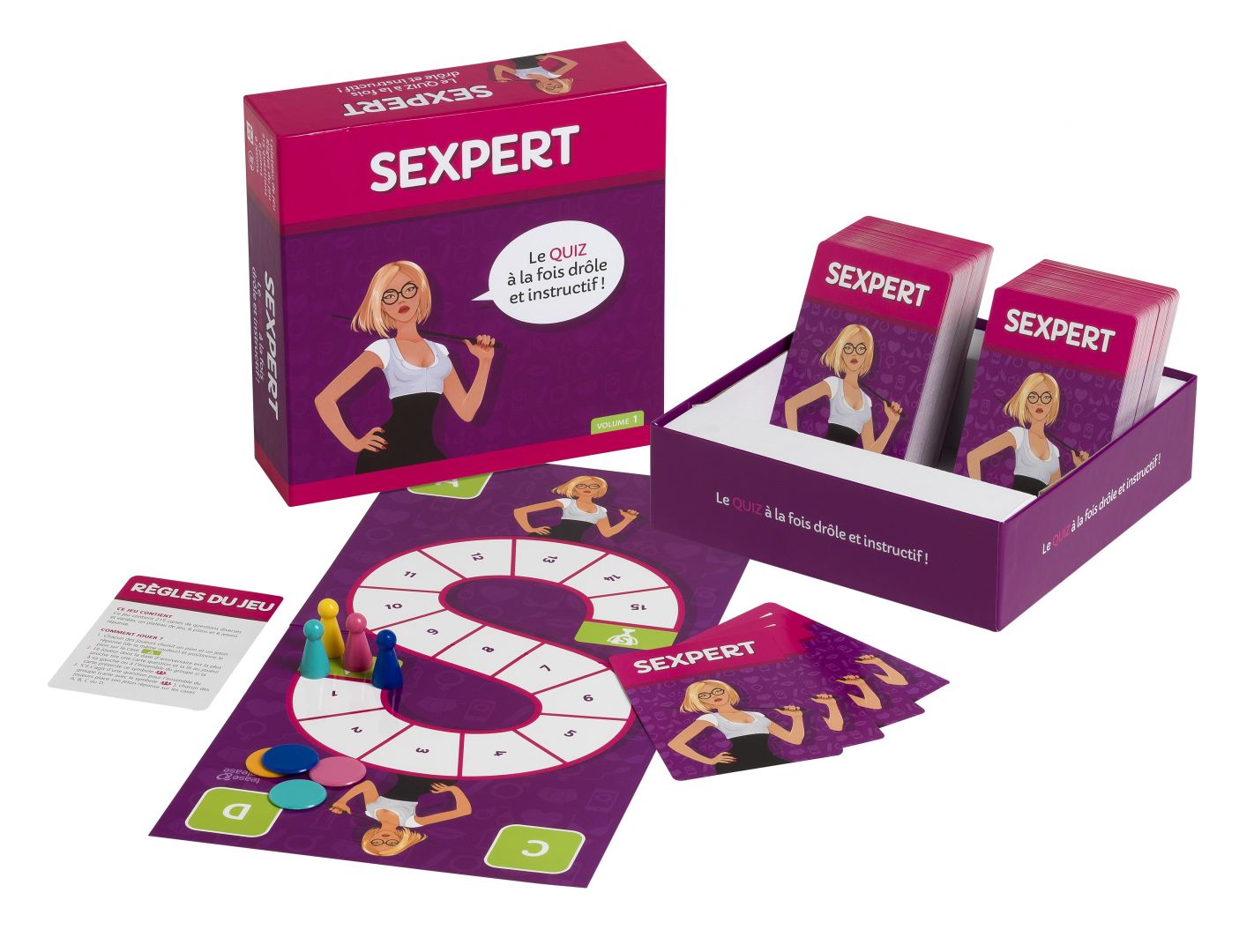 Vous en savez plus que vos compagnons de jeux sur l?amour et la sexualité ? Alors, vous êtes le maître absolu en matière de sexe : le jeu érotique Sexpert !Testez vos connaissances en matière de sexualité en piochant, chacun à votre tour, les cartes de questions du jeu érotique de couple sexpert. Les questions sont extrêmement variées et d?une originalité rafraîchissante; il se pourrait même qu?elles vous ouvrent de nouveaux horizons… Cerise sur le gâteau, la majorité des cartes vous fourniront des détails croustillants sur la réponse exacte: un quiz à la fois drôle et instructif ! Malheureusement, il y a encore de nombreux tabous et préjugés en matière de sexualité. Le jeu érotique SEXPERT les balaye d?un revers de main une bonne fois pour toutes !Ce jeu contient plus de 200 cartes de questions diverses et variées (quelques unes sont illustrées), un plateau de jeu, 6 pions et 6 jetons réponse. Sévère mais sexy en diable, l?institutrice, présentée sur la boite du jeu, va vous faire vous creuser les méninges et, comme au bon vieux temps, elle vous donnera l?envie de vous dépasser ne serait ce que pour faire bonne impression ! Les joueurs tirent, chacun leur tour, une carte de la pile. La carte peut être une question ouverte, un vrai ou faux ou une question à choix multiples. Certaines sont individuelles ; d?autres sont collectives. Que vous soyez novice ou connaisseur, que le sexe soit un sujet qui vous fasse rougir ou qui attise votre curiosité : vous apprendrez forcément quelque chose de nouveau avec le jeu érotique SEXPERT.Exemple de questions 😕 Quelle est la position qui brûle le plus de calories (pour le partenaire actif) ?? Vrai ou Faux ? Les femmes qui portent souvent des talons aiguilles ont des orgasmes plus intenses.? Dans quelle situation bien spécifique, l?éjaculation d?un homme produit du sperme deux fois plus riche en spermatozoïdes qu?à l?accoutumé ?? Les hommes aussi ont un point-G. Où est-il ?Le jeu de couple érotique SEXPERT développe, non seulement, la connaissance et la perspicacité des joueurs mais aussi leur propension à discuter librement de sexe. Association et expertise de sexologues, l?expérience pour réaliser ce jeu érotique pour couples grisant remplis d?anecdotes croustillantes. Amusement et excitation garantis !Le jeu érotique Sexpert pour couples en vidéo.