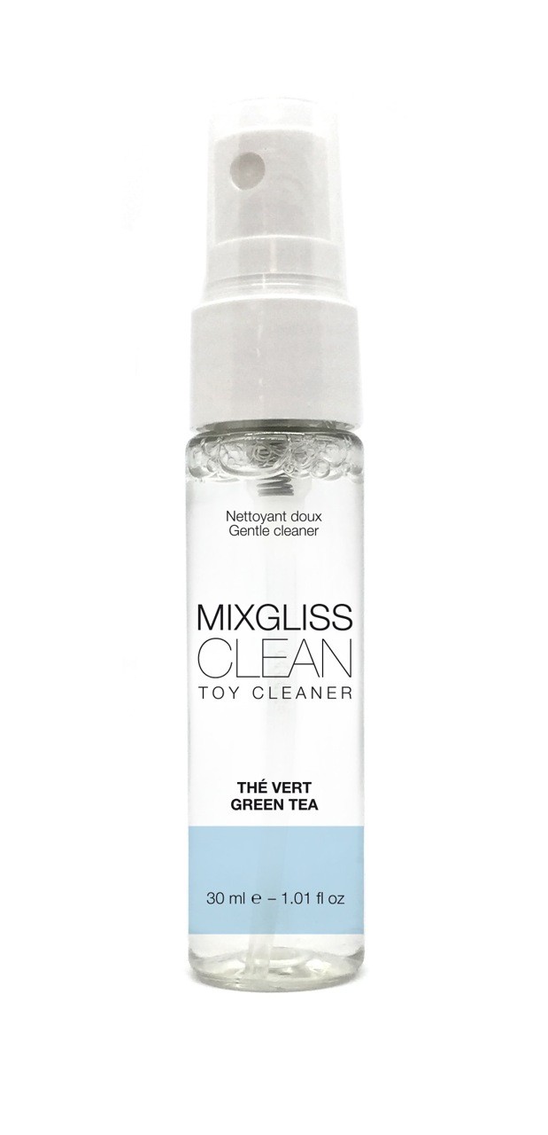 Ce petit flacon Mixgliss est un nouveau nettoyant pour sextoys, il a été conçu à base d’eau, sans alcool, pour un traitement et nettoyage de vos jouets coquins plus naturel et de leur permettre une longévité plus longue ! Parfumé au Thé Vert, ce nettoyant pour sextoys laissera une odeur agréable sur tout vos jouets coquins, et grâce à son petit format il est facilement transportable.Base EauParfum Thé VertFabrication française30 ml _______________Qu’il est bon de rentrer chez soi après le travail, de revoir son cher et tendre après une dure journée, de sentir son odeur particulière que vous aimez tant. Pour vos jouets, c’est pareil ! Vous rentrez du boulot mesdames, vous avez envie de vous amuser un peu seule ou avec votre partenaire, quoi de mieux qu’avec des jouets propres et qui sentent bon ? Plus ça sent bon, plus on a envie de goûter non ?