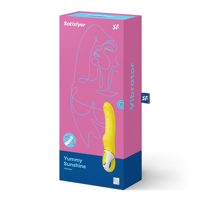 A la recherche d’un ami qui fait briller le soleil pour vous pendant les nuits froides ? Nous aimerions vous présenter Yummy Sunshine de Satisfyer. La combinaison d?un moteur exceptionnellement puissant et d?un silicone de haute qualité fait de ce jouet le nouvel indispensable, à poser gentiment dans le tiroir de votre table de chevet !Ce vibromasseur sensuellement courbé augmente le plaisir avec sa structure nervurée, son embout incliné et ses 12 programmes de vibrations puissantes.Grâce à son étanchéité, le Yummy Sunshine invite également aux plaisirs sensuels sous la douche ou dans la baignoire.Vibromasseur rechargeable avec nervures stimulantesCe vibromasseur flexible est recouvert de doux siliconeDes vibrations profondes et puissantes (12 programmes)Waterproof. Facile à nettoyerLongueur : 22.5 cmDiamètre : 3.6 cmRechargeable, il est livré avec son chargeur magnétique USBComposition : silicone, ABSCouleur : Jaune